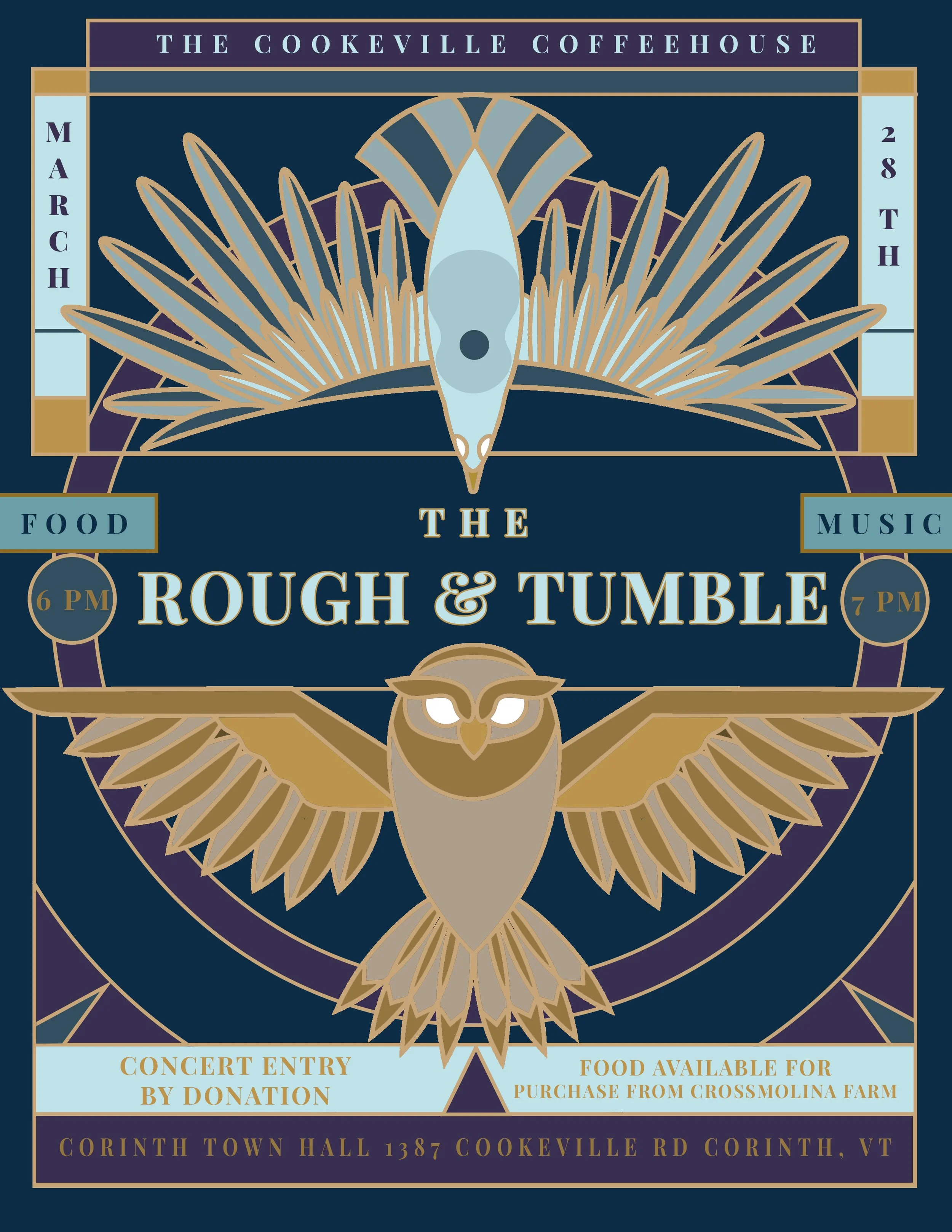 Looking ahead .... SAVE THE DATE The Cookeville Coffee House returns for a mud seasonspecial ! Music from The Rough & Tumble and A BBQ feast cooked up by yours truly. March 28th. Dinner at 6. Music at 7. Dinner is $24 for Adults and $12 for kids under 12.